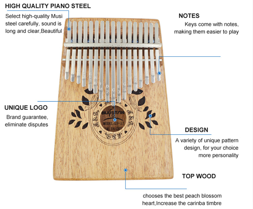カリンバムビラサンザ-17キー親指ピアノ初心者セット