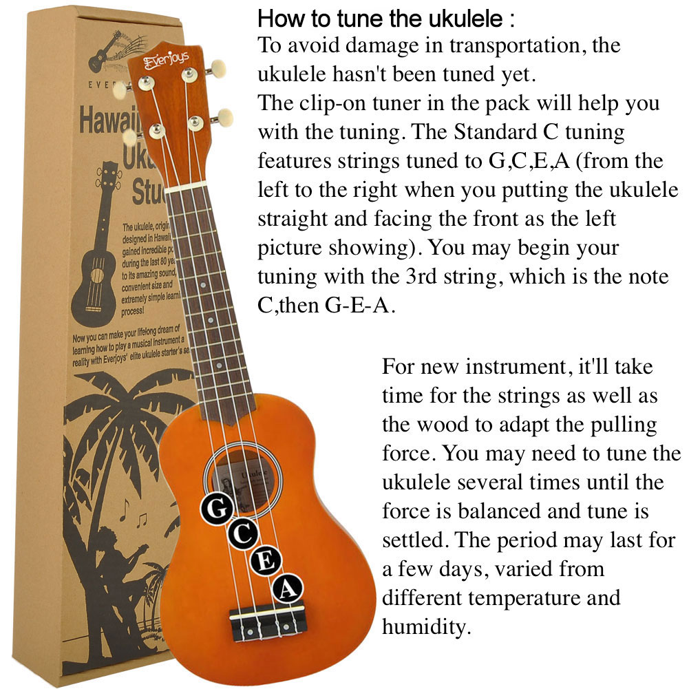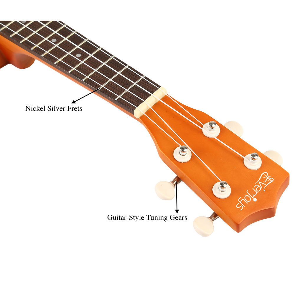 します習得が簡単:演奏に多くの時間を費やし、チューニングにかける時間を減らします!正確で滑らかな、クロームメッキのギタースタイルチューナー。ウクレレを常に調整します。12のニッケルシルバーフレットと、正しいフレットのポジショニング、5番、7番、10番のフレットのネック、指板の上部